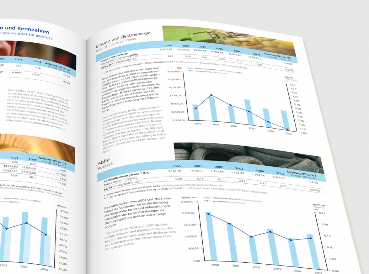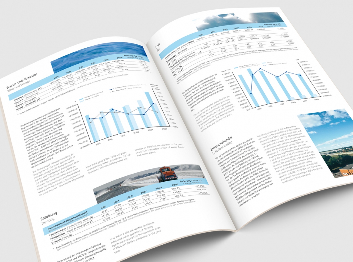 Visuelle Konzeption und Gestaltung der Umwelterklärung für die Berliner Flughäfen. In Zusammenarbeit mit Acies Kommunikation.